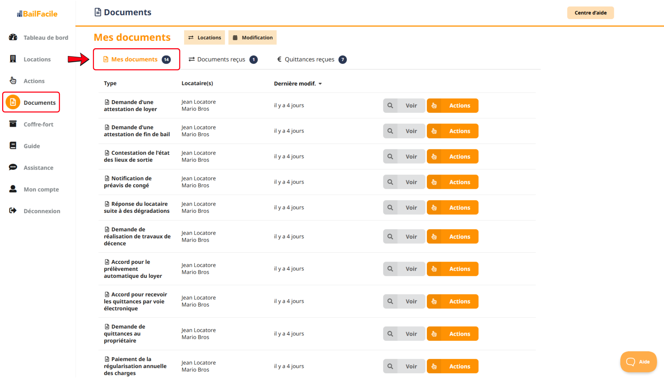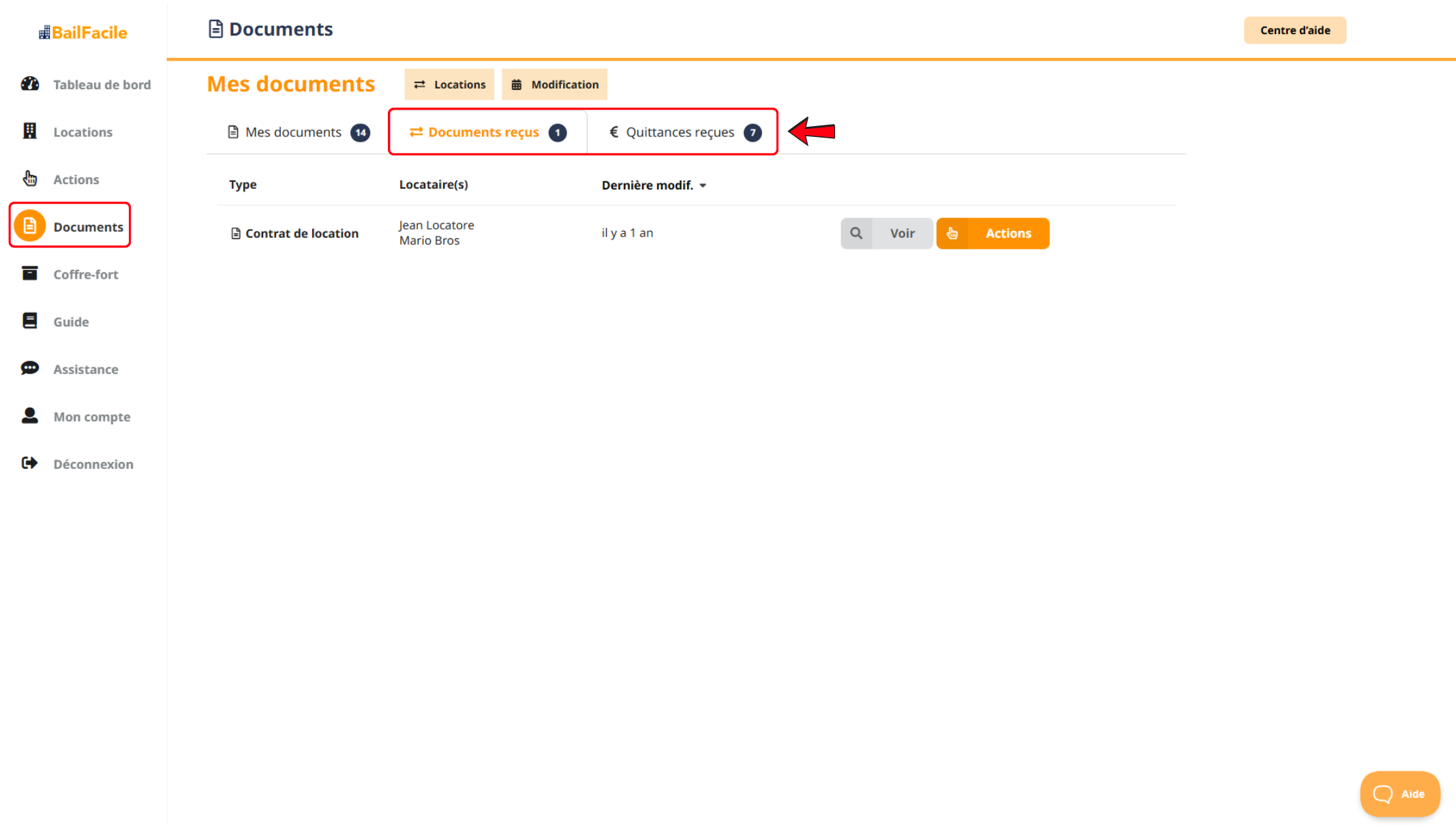 Ces documents sont accessibles soit à l'onglet "Documents", soit à l'onglet "Quittances".