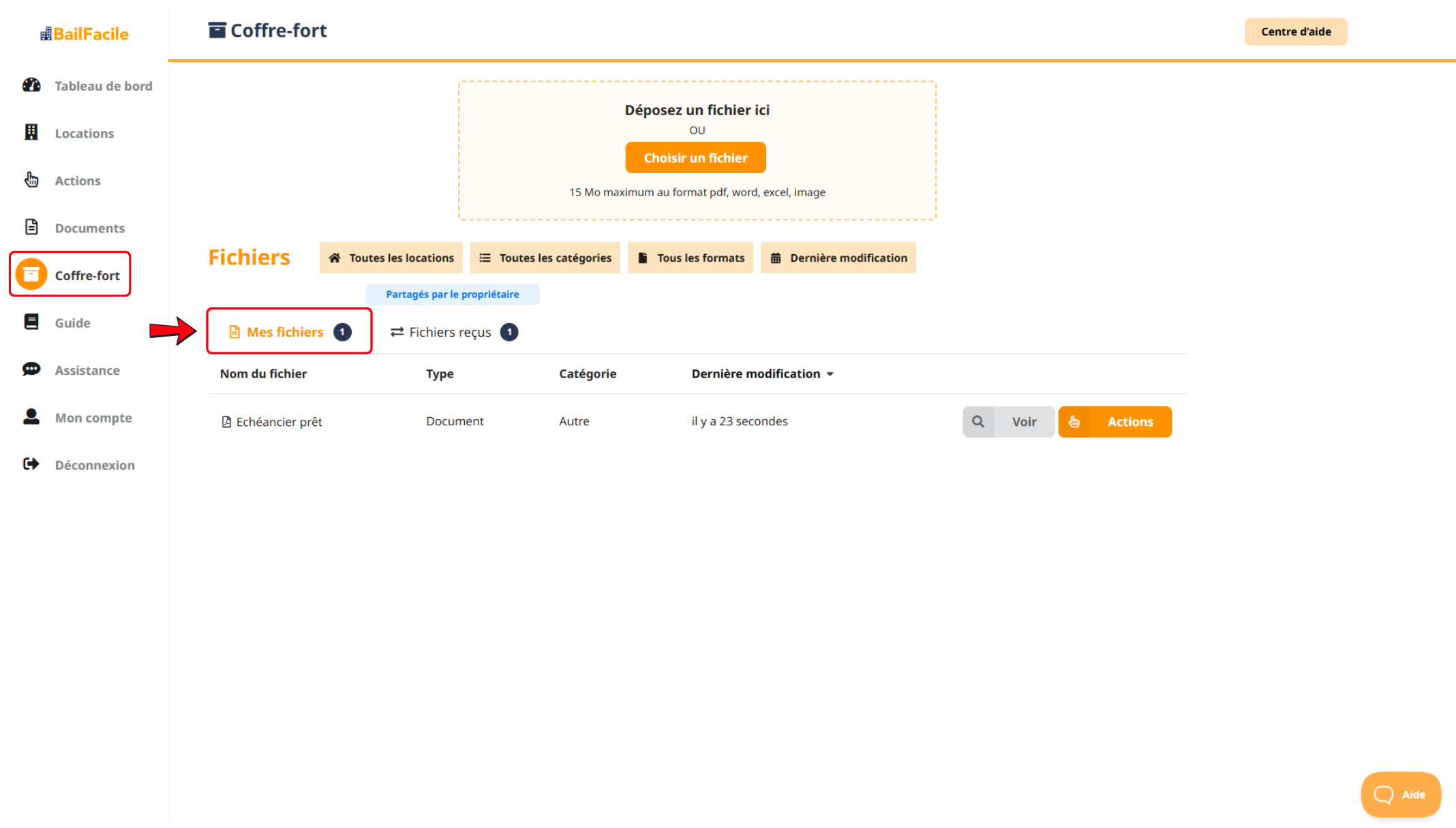 ➡️ Ces documents sont accessibles dans l'onglet "Mes fichiers" de la page "Coffre-fort".