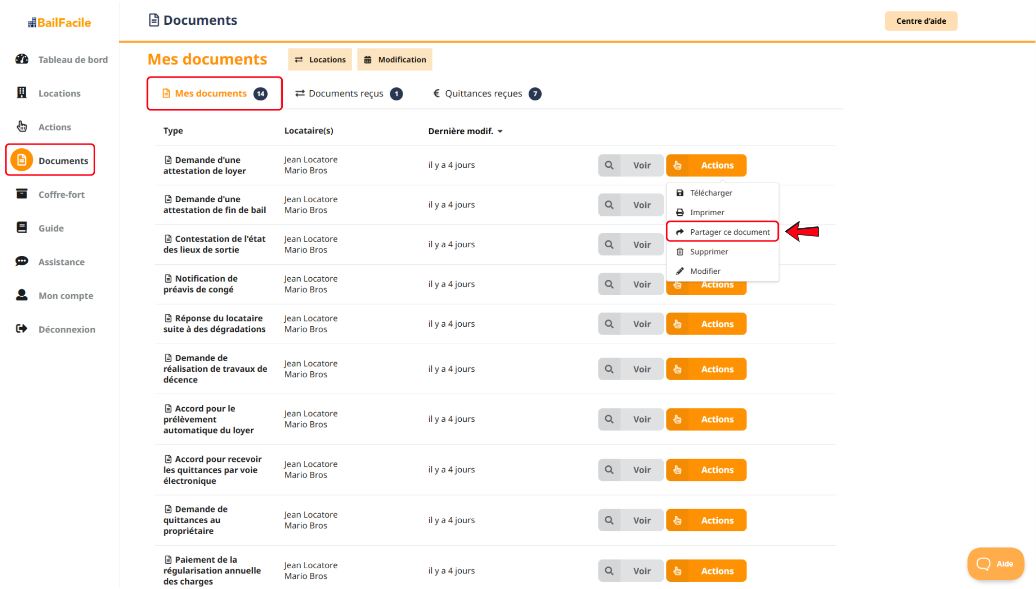 En quelques clics, vous pouvez partager un document avec votre propriétaire. Il le recevra directement dans son espace BailFacile et sera informé par e-mail 😉.