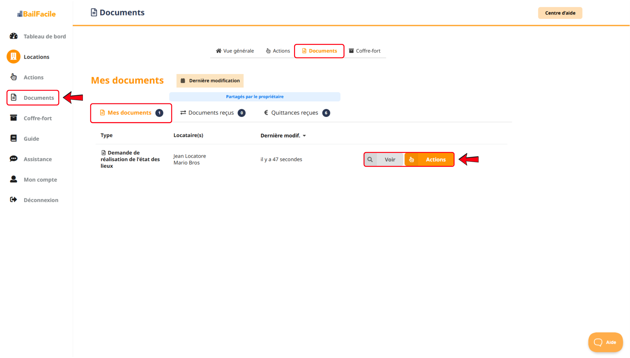 Cliquez sur "Actions" pour le télécharger/imprimer, modifier, partager, supprimer, ou sur "Voir" pour le visualiser.