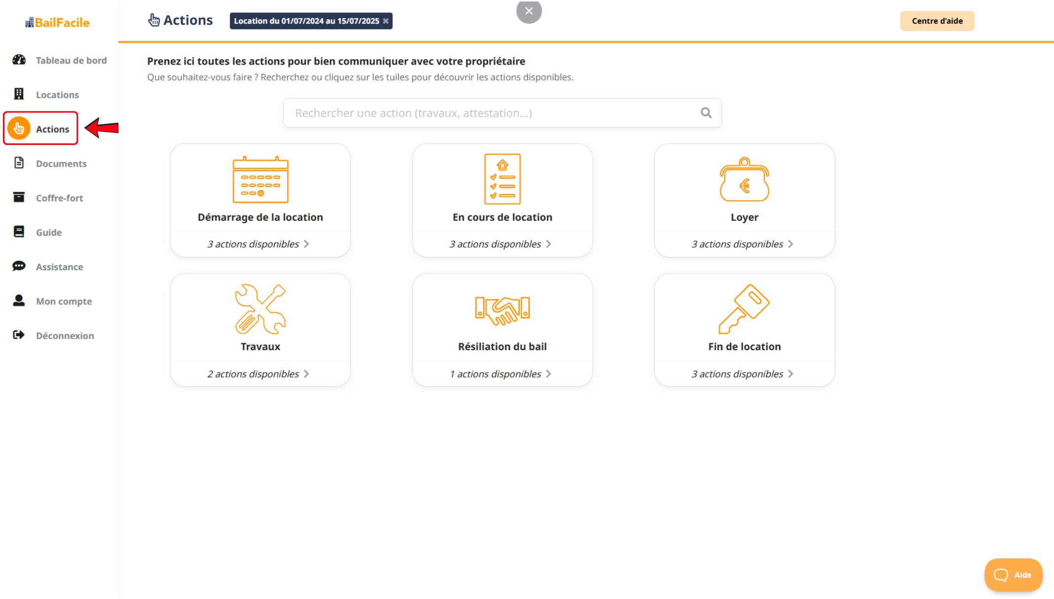 1 - Rendez-vous à la page "Actions"