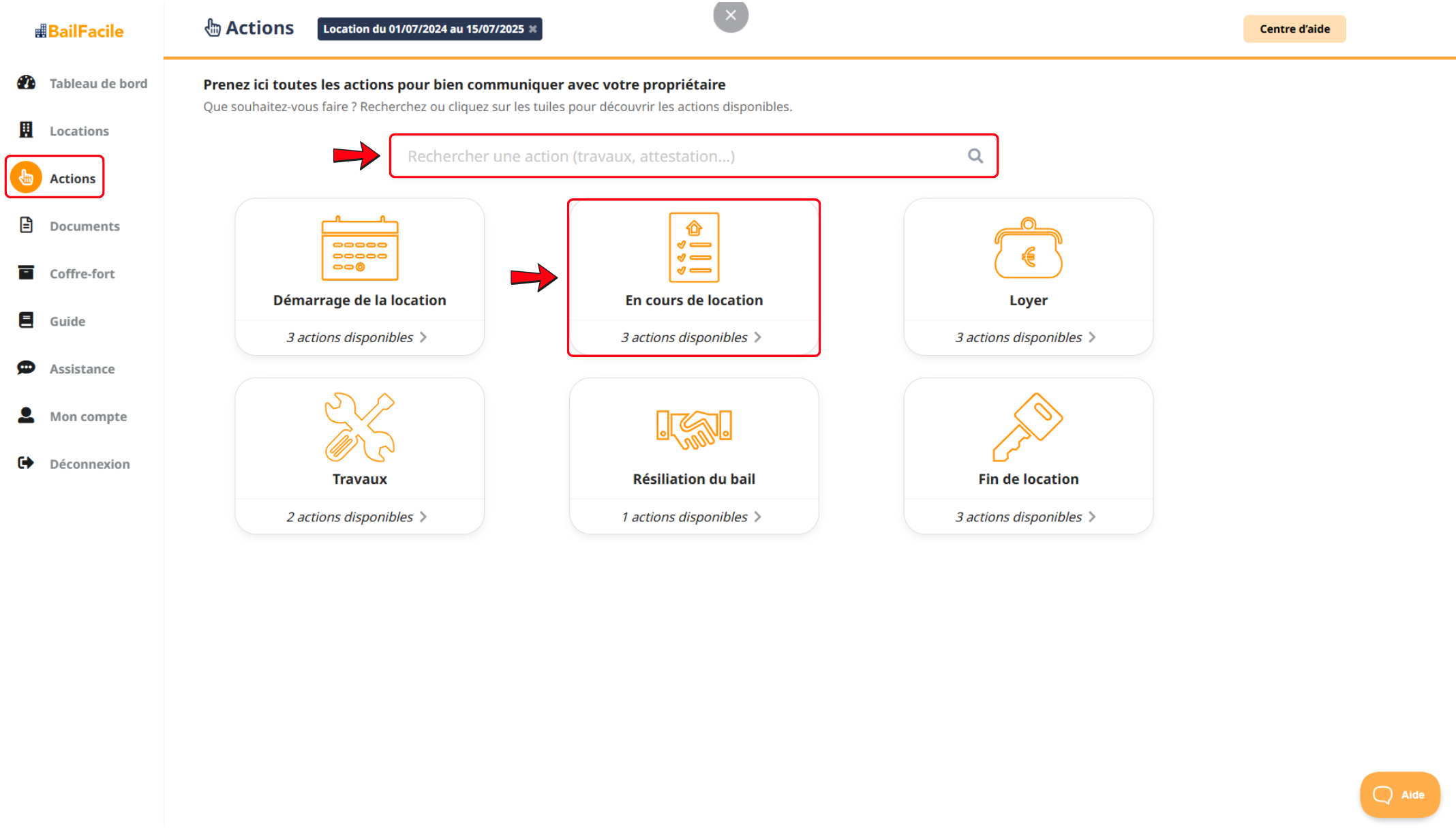 1 - Rendez-vous à la catégorie "En cours de location" de la page "Actions"