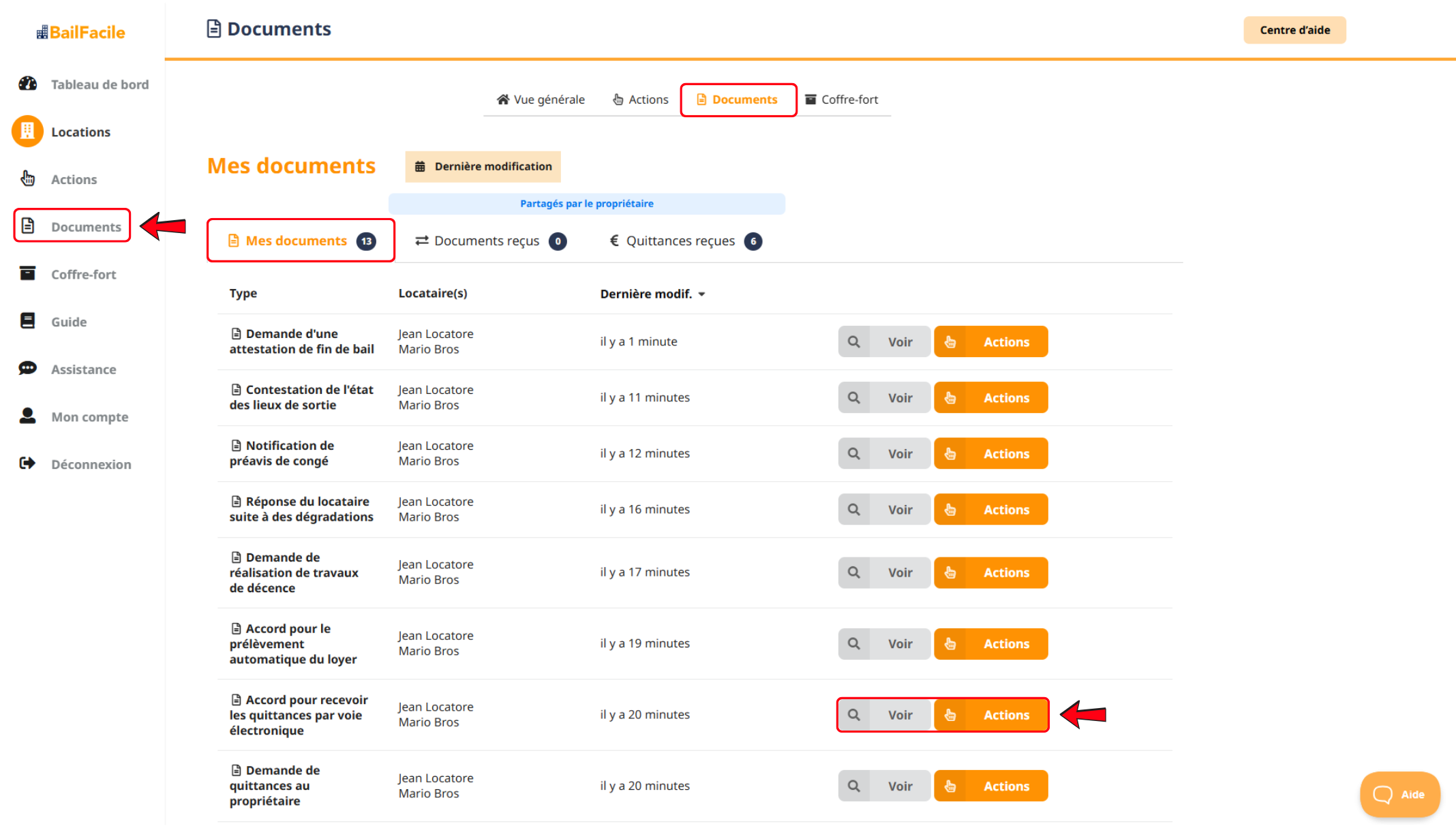 Cliquez sur "Actions" pour la télécharger/imprimer, modifier, partager, supprimer, ou sur "Voir" pour la visualiser.