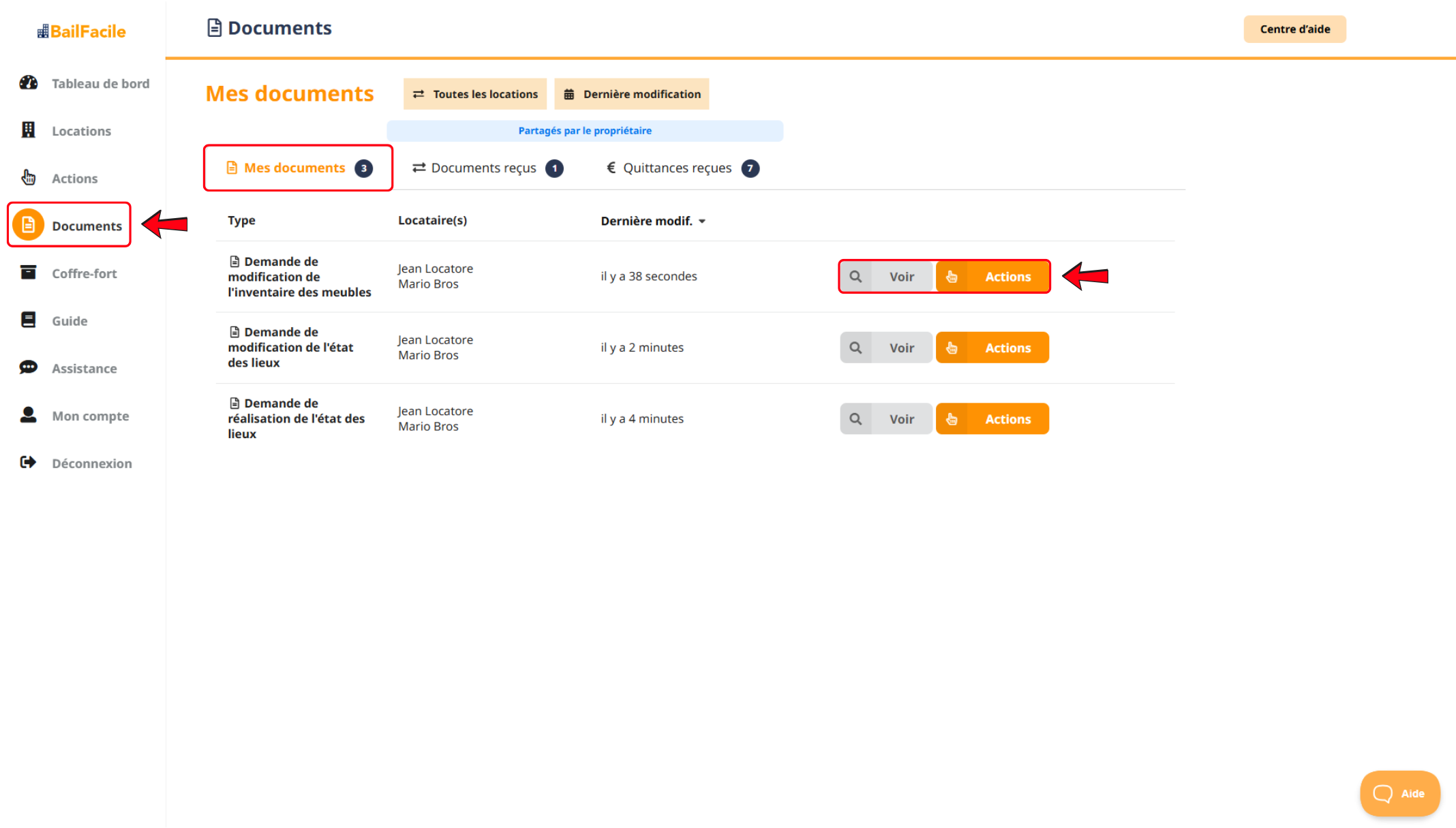 Cliquez sur "Actions" pour la télécharger/imprimer, modifier, partager, supprimer, ou sur "Voir" pour la visualiser.