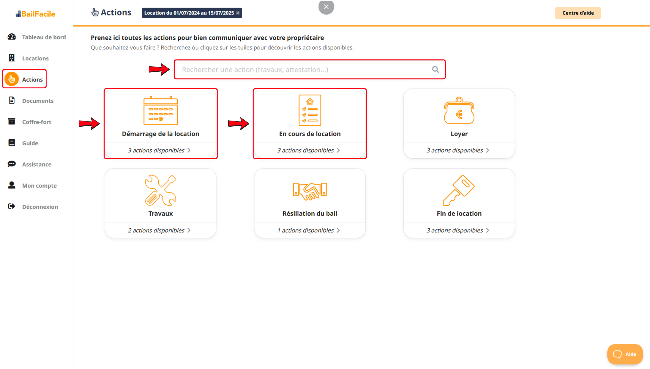 1 - Rendez-vous à la catégorie "Démarrage de la location" ou "En cours de location" de la page "Actions"
