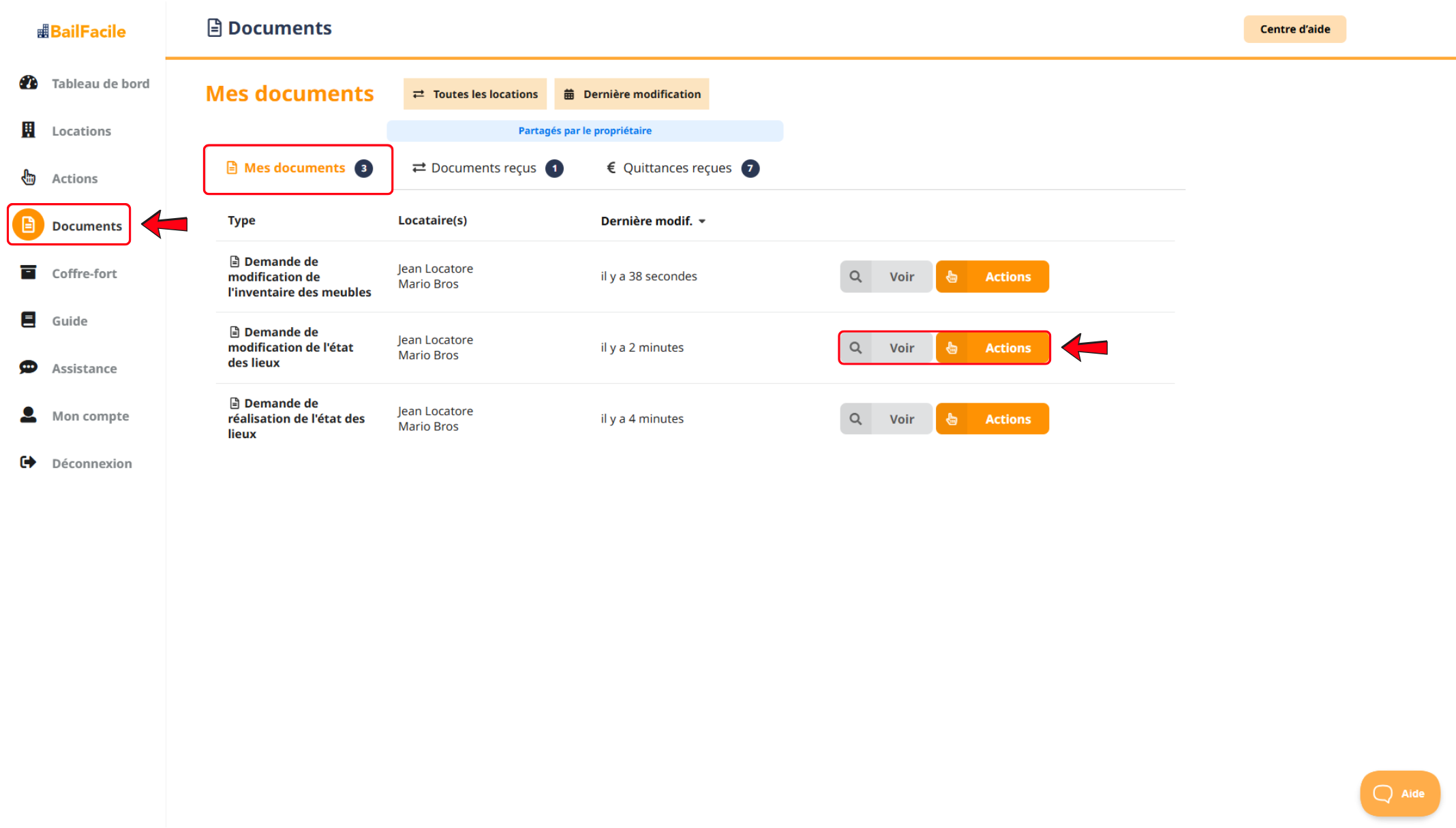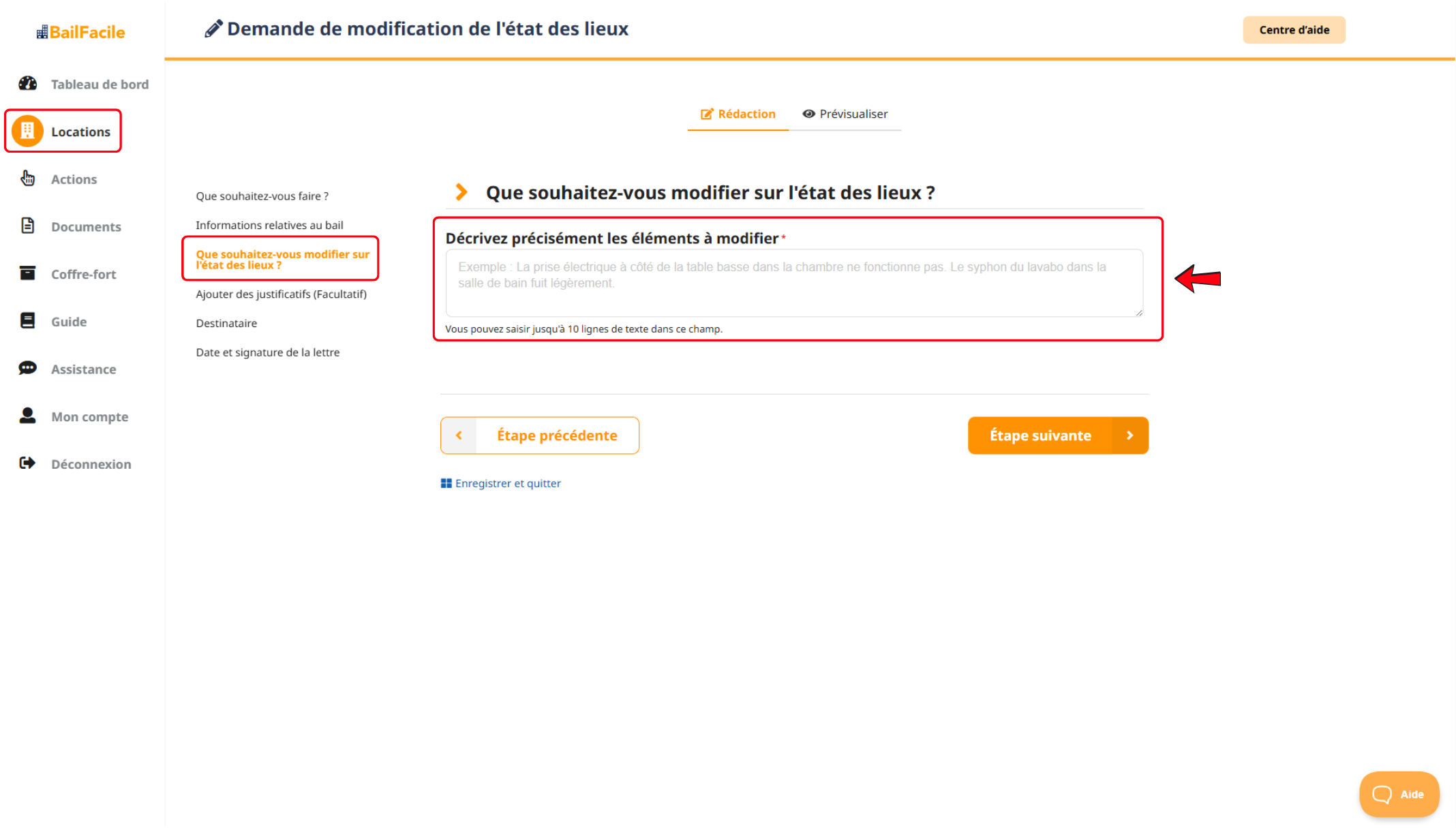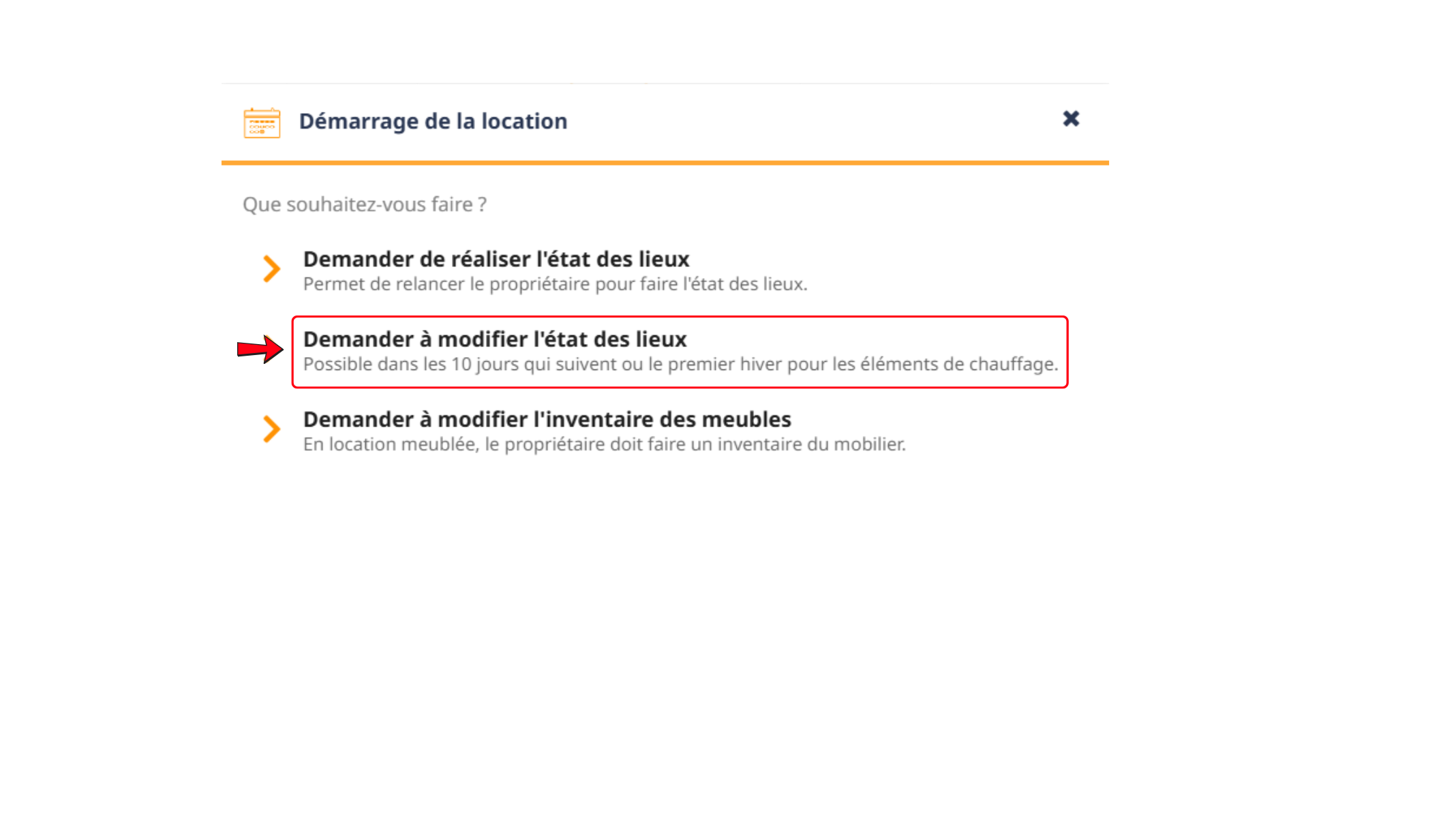 2 - Choisissez "Demander à modifier l'état des lieux"